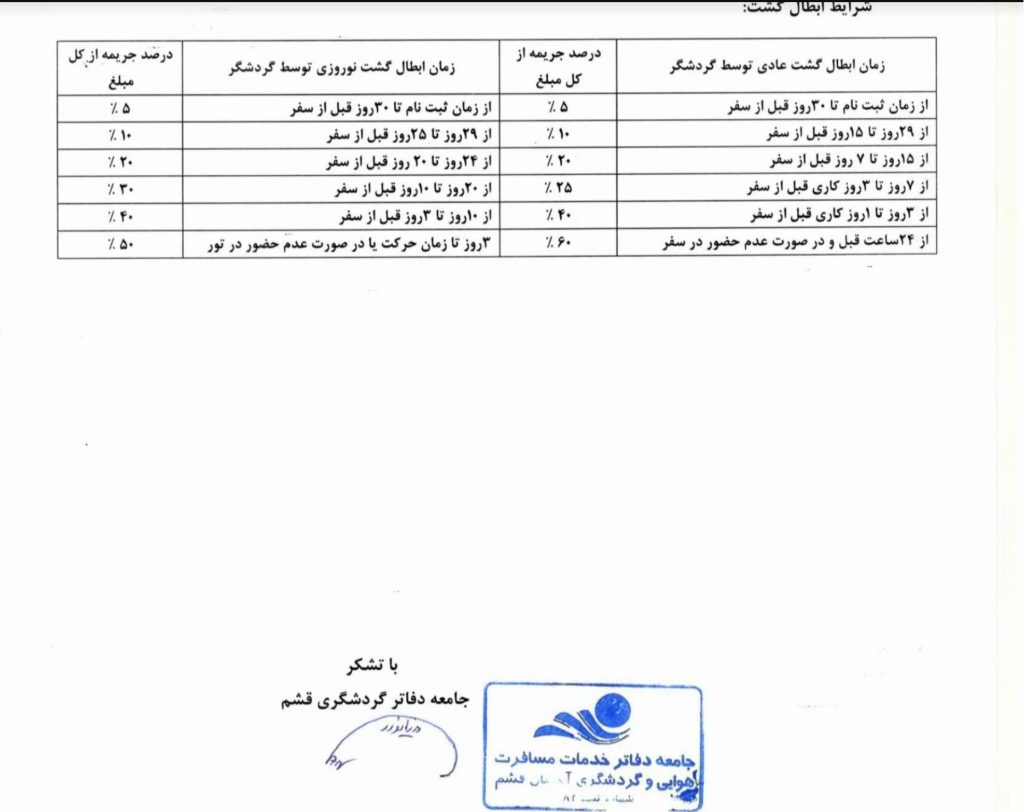 موارد احتمالی لغو تفریح خریداری شده که مبلغ بدون کسر جریمه عودت داده می شود
